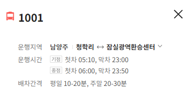 남양주 1001번 버스 노선 정보