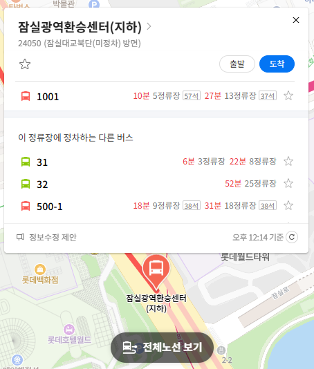 마지막 정류장 잠실광역환승센터 위치 알아보기