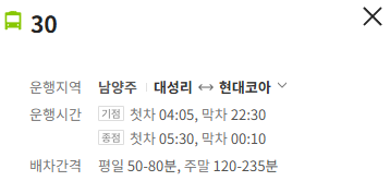 종점행 : 첫차 : 05:30 막차 : 00:10