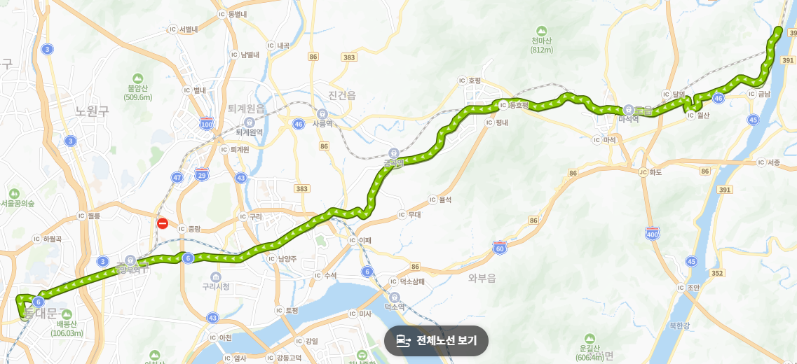 경춘선 전철과 노선이 겹치면서도 버스만의 확실한 장점을 가집니다.