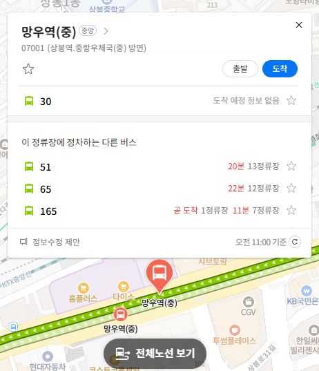 실시간 위치를 확인하시면 현재 버스의 위치를 알 수 있습니다.