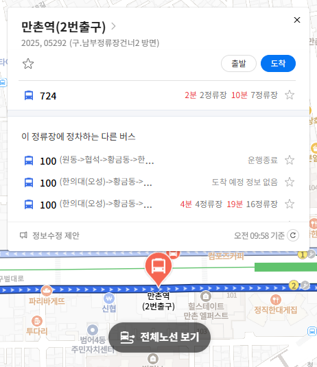 주요 버스 정류장 만촌역(2번출구) 위치 알아보기