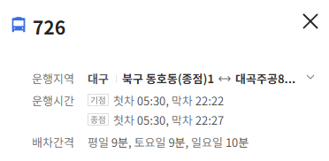 726번은 운행 경로가 길어 대구 지하철 전 호선과 환승이 가능합니다.