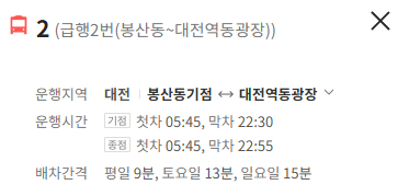 종점행 : 첫차 : 05:45 막차 : 22:55