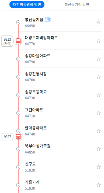 기점행 : 첫차 : 05:45 막차 : 22:30