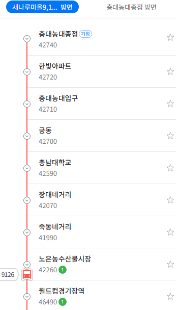 실시간 위치를 확인하시면 현재 버스의 위치를 알 수 있습니다.