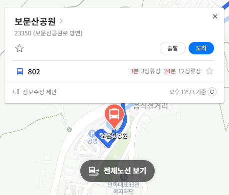 마지막 버스 정류장 보문산공원 위치 알아보기