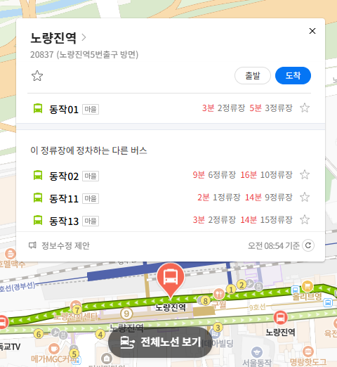 주요 버스정류장 노량진역 위치 알아보기