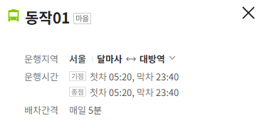 동작 01번 버스 노선 정보