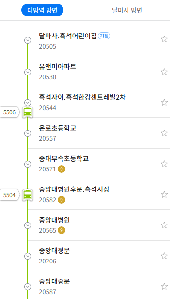 이용 팁: 노선이 중앙대 캠퍼스와 노량진 학원가를 모두 지나기 때문에 출퇴근 시간뿐만 아니라 등하교 시간에도 이용객이 매우 많습니다. 하지만 배차 간격이 짧고 순환이 빨라 금방 다음 버스를 이용할 수 있는 것이 큰 장점입니다.