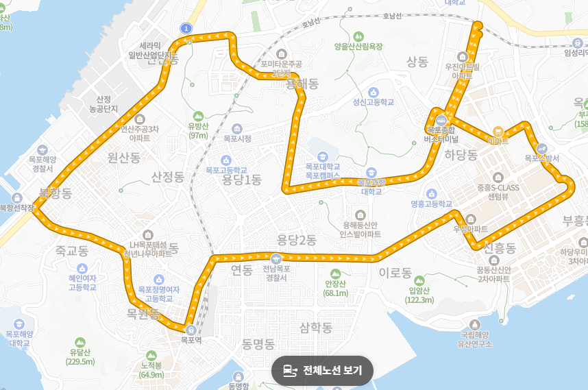 원스톱 이동: 순환 노선의 특성상, 목포의 한 끝에서 다른 끝까지 환승 없이 한 번에 이동할 수 있는 경우가 많아, 이동 시간과 환승 대기 시간을 절약할 수 있습니다.