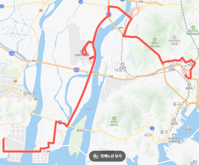 ● 강서구와 서면을 빠르게 연결: 강서공영차고지, 명지신도시 등 부산 강서구 서부 지역에서 부산의 핵심 번화가인 서면까지 빠르게 이어줍니다. 급행 버스이므로 정차 정류장 수가 적어 이동 시간을 단축합니다.