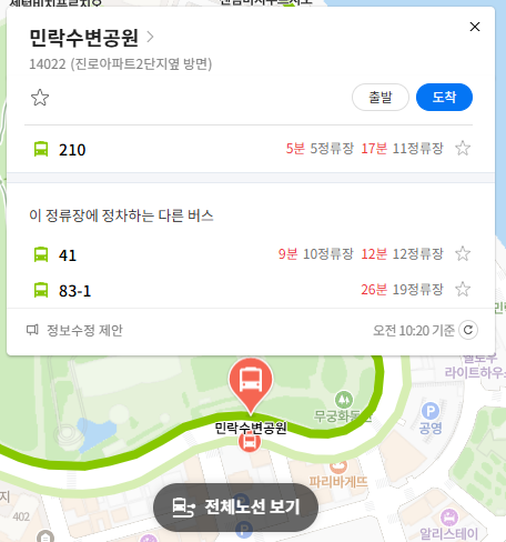 주요 정류장 민락수변공원 위치 알아보기