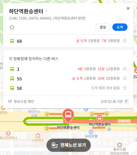 하단역 환승센터: 부산 지하철 1호선 하단역과 연결되어 다대포, 동아대학교 등으로의 환승이 편리합니다.