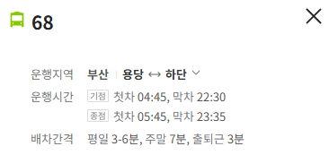 종점행 : 첫차 : 05:45 막차 : 23:35
