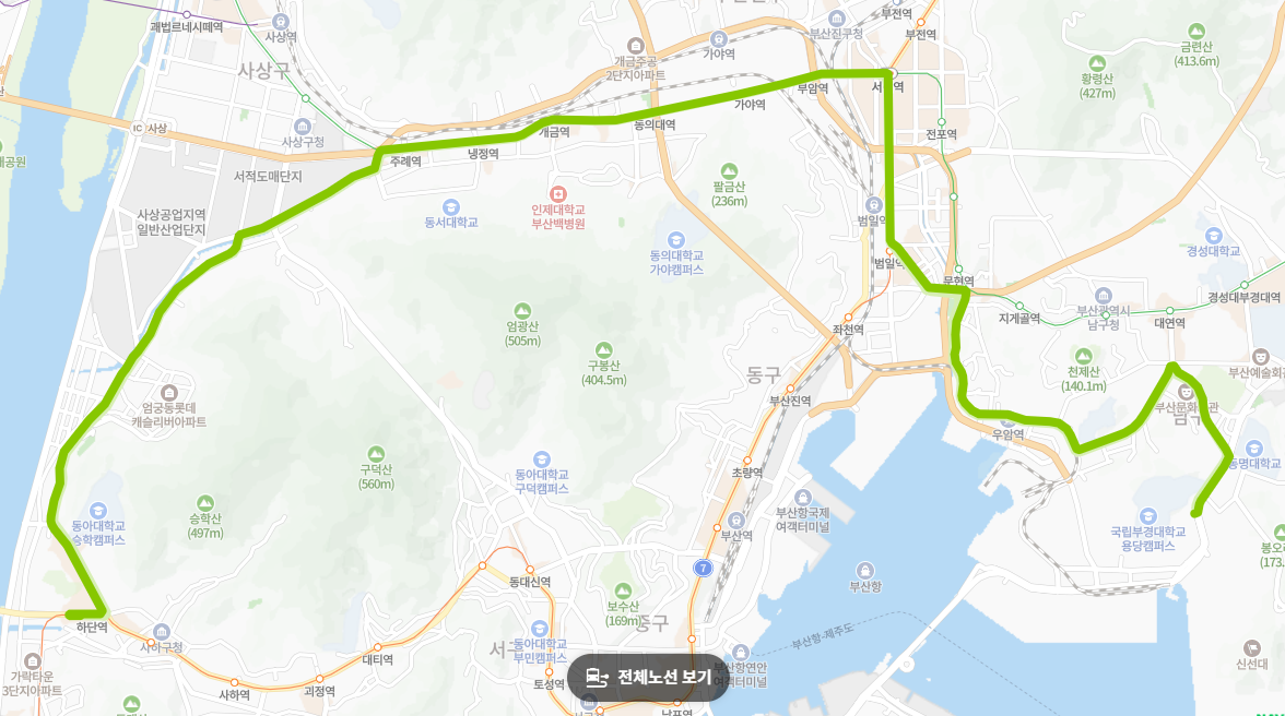 도시 철도 소외 지역 연결: 용당동, 우암동, 감만동 일대 등 도시철도 접근성이 떨어지는 지역 주민들에게도 서면 등 도심 중심지로의 직통 노선을 제공하여, 지역 간 이동 편의성을 크게 향상시킵니다.
