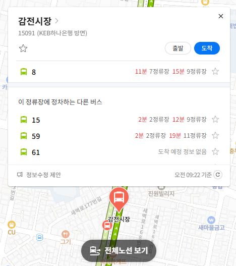 실시간 위치를 확인하시면 현재 버스의 위치를 알 수 있습니다.