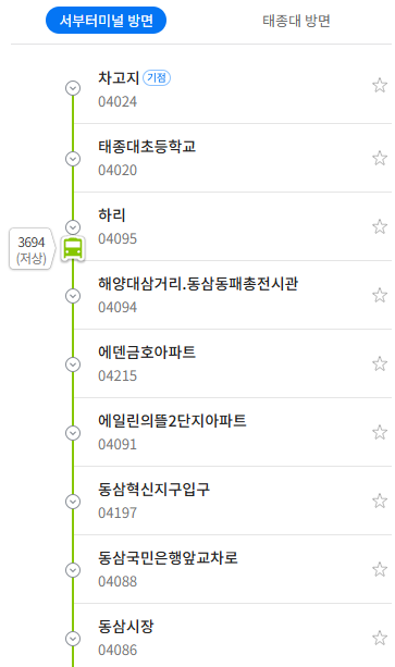 기점행 : 첫차 : 04:48 막차 : 22:13