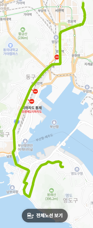 주요 도심 연결: 영도에서 출발하여 남포동, 중앙동, 부산역, 부산진역, 범일동, 범내골 등 부산의 주요 상업 및 교통 요지를 지나 전포동까지 이어지는 노선으로, 영도 주민들이 시내 중심부로 이동하기에 매우 편리합니다.