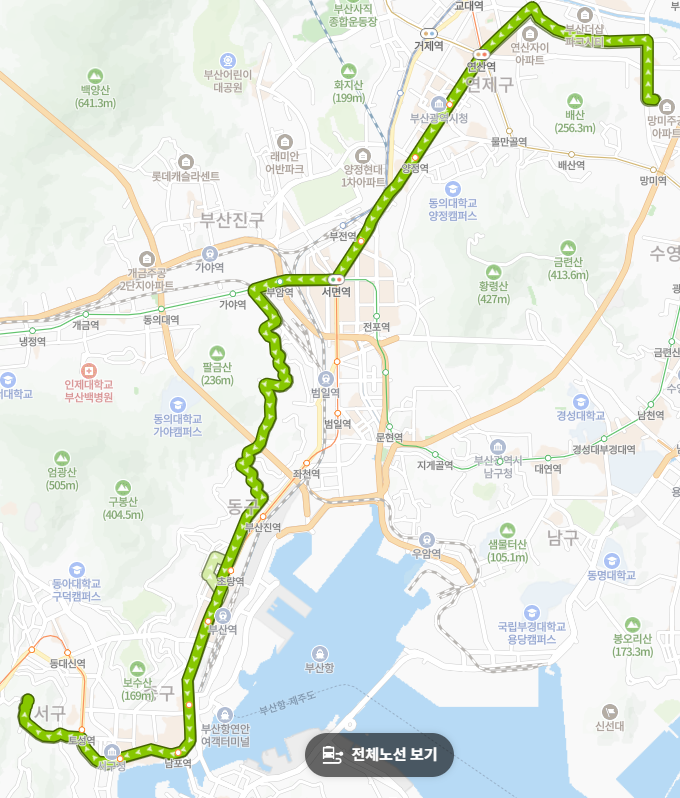 부산 시내버스 중 일일 승차량 상위권을 유지하는 인기 노선인 만큼, 배차 간격이 약 7~10분 내외로 매우 짧습니다. 오래 기다리지 않고 탈 수 있다는 점은 바쁜 출퇴근 시간대나 여행 중 시간을 아껴야 하는 상황에서 큰 장점이 됩니다.