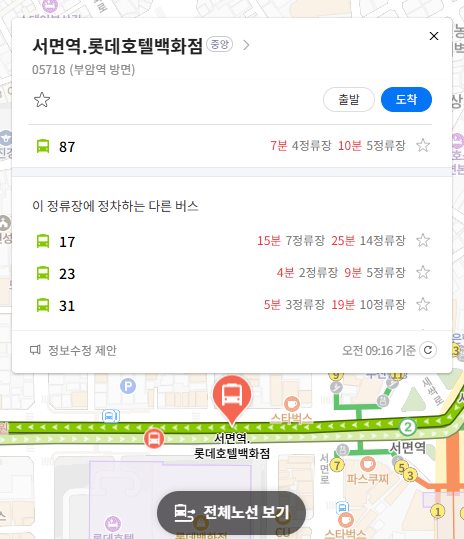 주요 버스 정류장 서면역.롯데호텔백화점 위치 알아보기