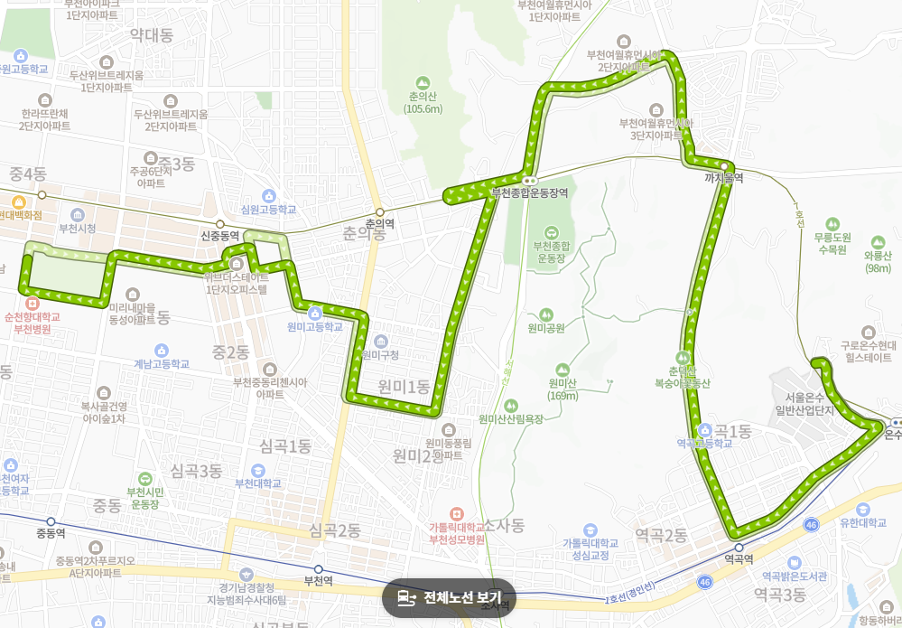 서울 끝자락인 수궁동과 온수동 주민들이 부천 시내로 진입하거나 역곡역 상권을 이용할 때 가장 빠르고 편리하게 이용할 수 있는 노선입니다. 서울과 부천의 경계를 허무는 생활 밀착형 노선으로서 가치가 큽니다.