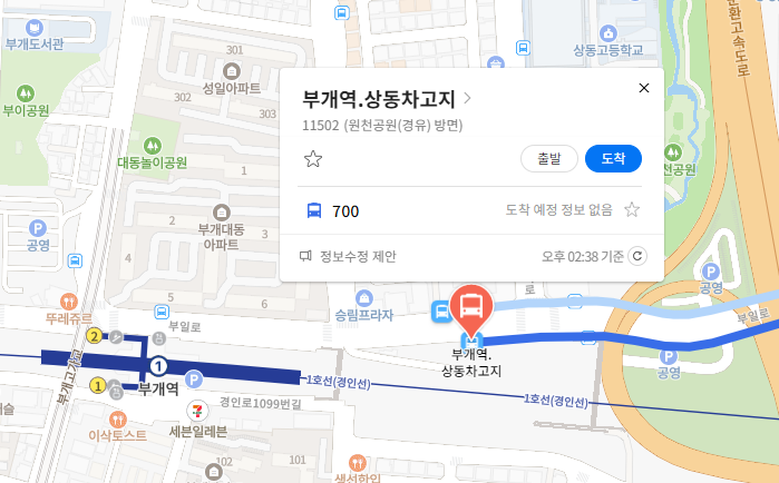 첫 번째 정류장 부개역.상동차고지 위치 알아보기