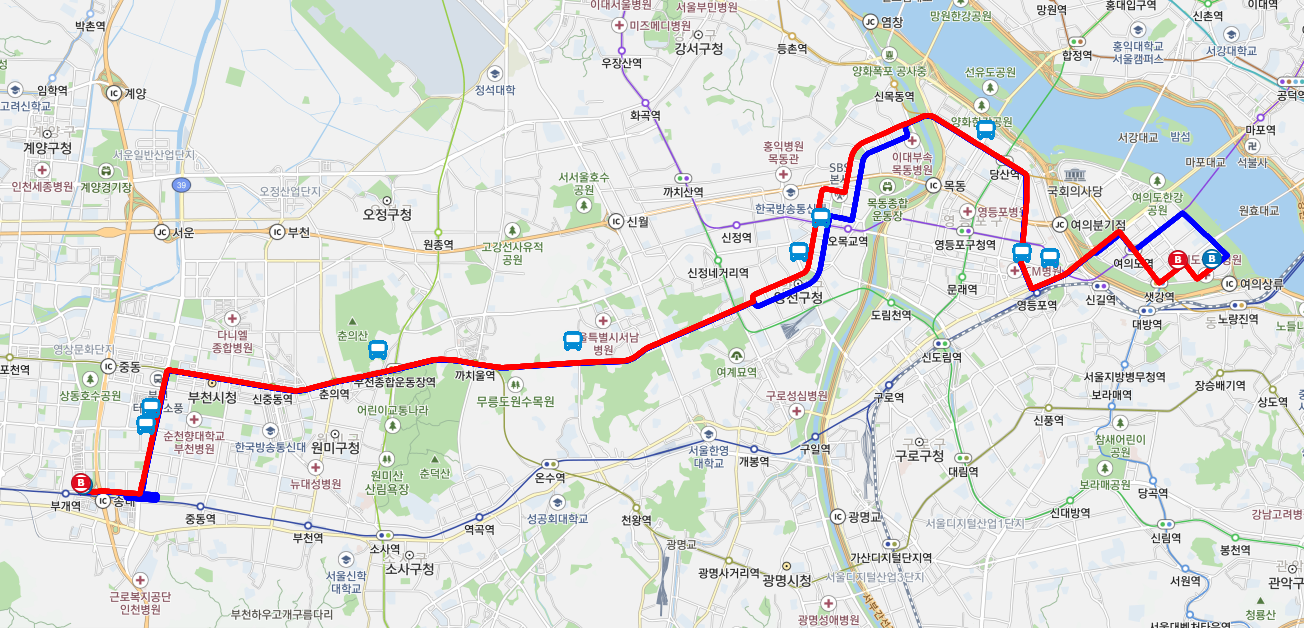 종점 : 63빌딩.가톨릭대학교여의도성모병원