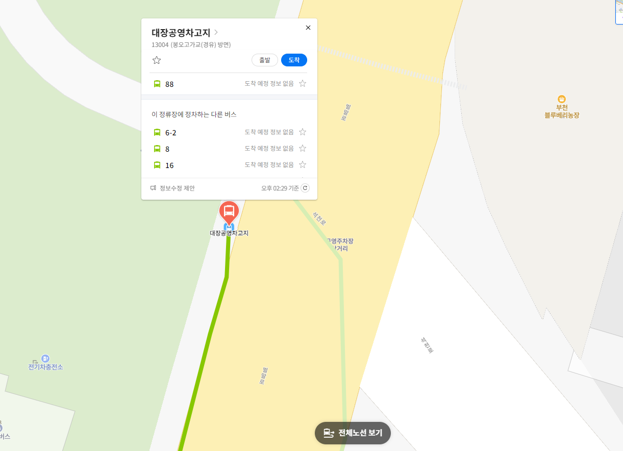 첫 번째 정류장 대장공영차고지 위치 알아보기