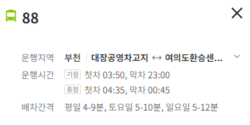 기점행 : 첫차 : 03:50 막차 : 23:00