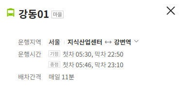 2023년 8월 31일 첫차부터 고덕비즈밸리 접근성 향상 및 대중교통 이용 편의를 위해 강동 01번 노선을 변경하여 운행하고 있습니다.