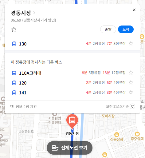 실시간 위치를 확인하시면 현재 버스의 위치를 알 수 있습니다.
