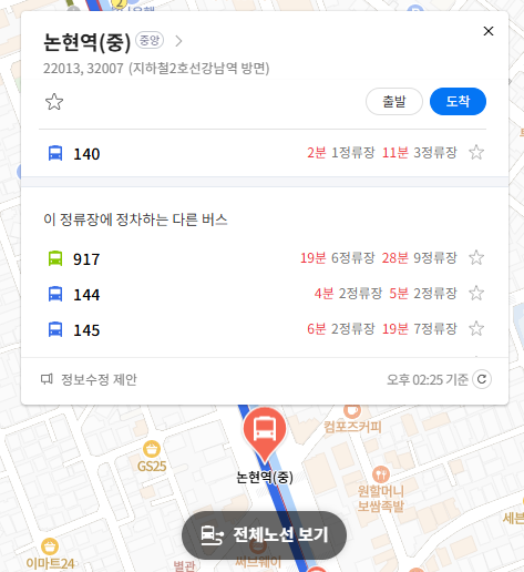 실시간 위치를 확인하시면 현재 버스의 위치를 알 수 있습니다.