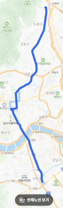 주요 철도역 및 상권 연계: 도봉산역, 쌍문역, 수유역, 미아사거리역 등 북부의 주요 지하철역을 비롯해 혜화동(대학로), 강남역, 양재역 등 서울의 핵심 상권과 업무 지구를 모두 경유하여 접근성이 매우 뛰어납니다.