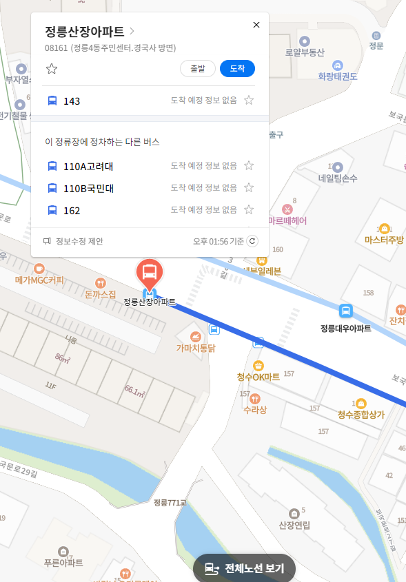 첫 번째 정류장 정릉산장아파트 위치 알아보기