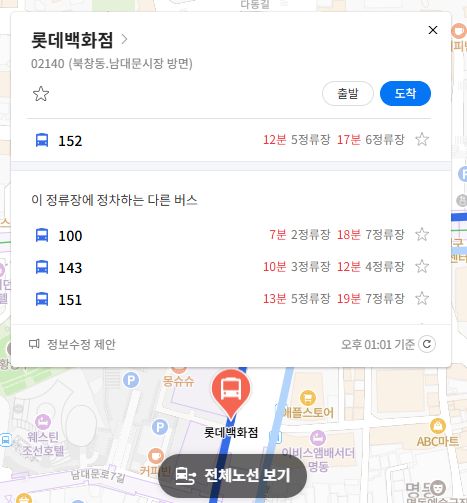 주요 버스 정류장 롯데백화점 위치 알아보기