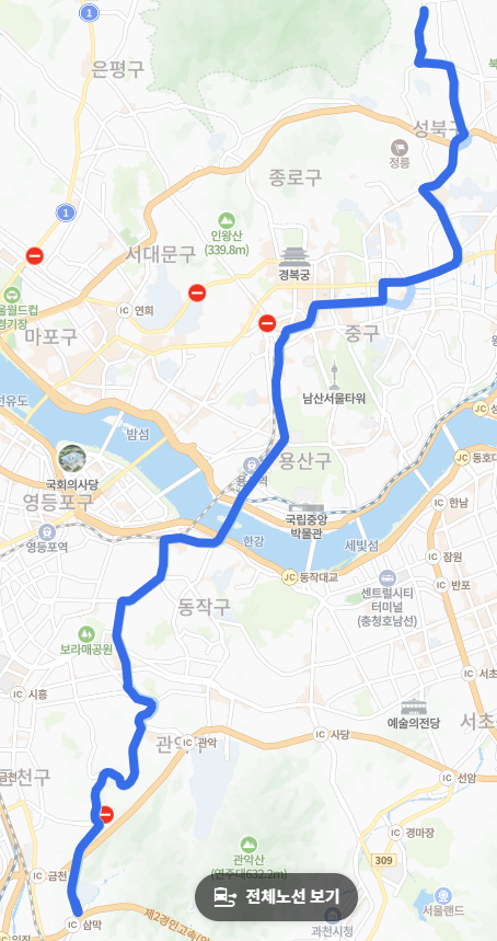 다양한 지역 연결: 강북의 주택가와 상업지구, 서울의 핵심 도심, 주요 교통 요지, 그리고 서울 남부의 주요 상권 및 주거 지역을 유기적으로 연결하여 지역 주민들의 광역 이동 수요를 충족시킵니다.