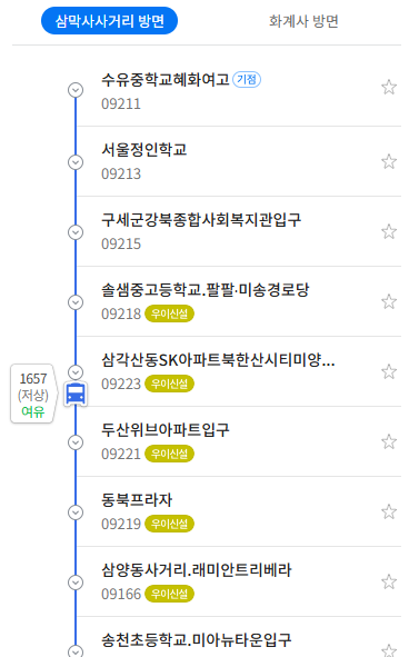 솔샘터널 이전 구간: 강북구 솔샘터널 인근 및 삼양동 사거리 이전 구간에서 성신여대 및 서울 시내 방면으로 나가는 유일한 간선버스로 기능하여, 이 지역 주민들의 시내 접근에 필수적인 노선입니다.
