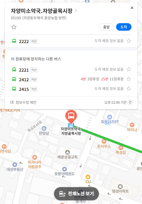 첫 번째 정류장 자양미소약국.자양골목시장 위치 알아보기