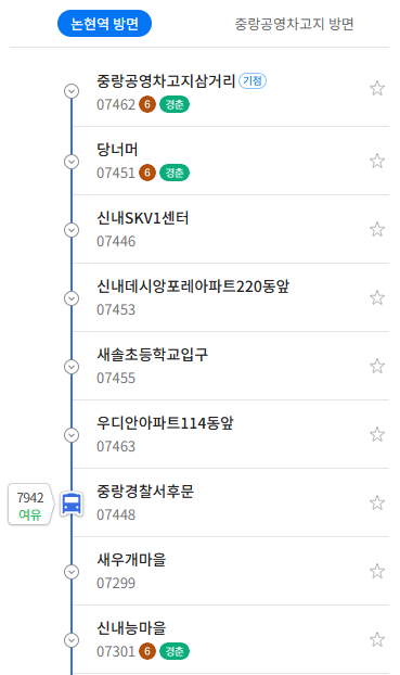 기점 : 중랑공영차고지삼거리