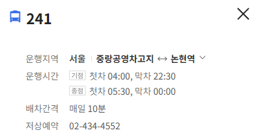 서울 241번 버스 배차간격