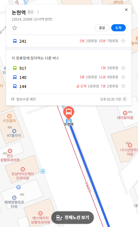 마지막 정류장 논현역 위치 알아보기
