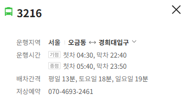기점행 : 첫차 : 04:30 막차 : 22:40