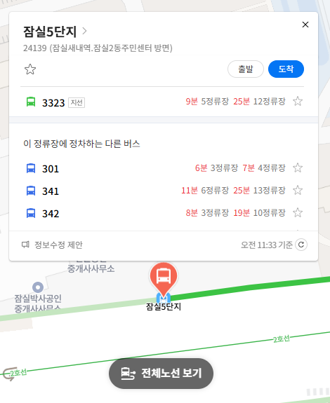 서울 3323번 버스 실시간 위치 조회하기