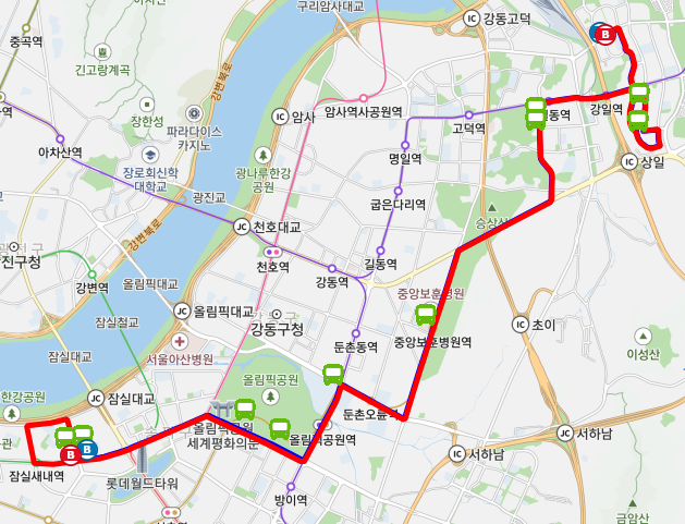 ● 강동구와 서초구를 직접 연결: 서울 동남부 지역인 강동구에서 강남권의 주요 거점인 양재역까지 환승 없이 한 번에 이동할 수 있어 편리합니다.