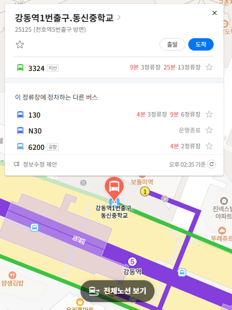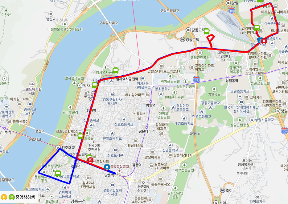 종점 : 강동역1번출구.동신중학교