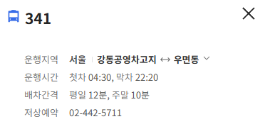 기점행 : 첫차 : 04:30 막차 : 22:20