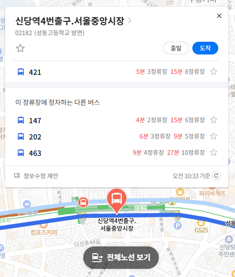 주요 버스 정류장 신당역4번출구.서울중앙시장 위치 알아보기