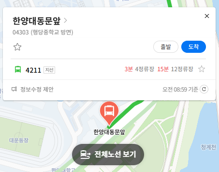 마지막 버스 정류장 한양대동문앞 위치 알아보기
