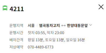 서울 4211번 버스 노선 정보